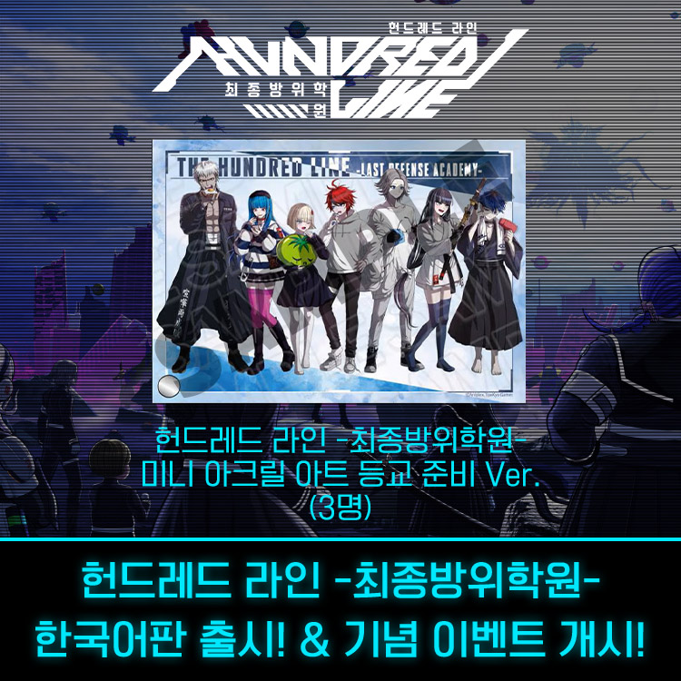 아크시스템웍스아시아 주식회사 (대표: 백수현)는 Tookyo Games 주식회사의 신작 어드벤처 게임, 『헌드레드 라인 -최종방위학원-』 한국어판이 Nintendo Switch™ 및 Steam®용 소프트로 금일 (2일, 목) 정식 출시되었다고 발표했다. 또한 출시를 기념하여 SNS 구매 인증 이벤트를 개최한다고 밝혔다.※ 패키지 이미지는 예시로, 실물과 다를 수 있습니다.『헌드레드 라인 -최종방위학원-』은 Tookyo Games 주식회사 (본사: 사이타마현 도코로자와시, 대표: 코다카 카즈타카)가 기획하고, 주식회사 Aniplex (본사: 도쿄도 치요다구, 대표: 니시모토 오사무)가 판매, Media.Vision 주식회사 (본사: 도쿄도 고토구, 대표 이사: 후쿠시마 타카시)가 개발을 담당한 Nintendo Switch™ 및 Steam®용 어드벤처 게임으로, 코다카 카즈타카 (대표작: ‘단간론파’ 시리즈 등)와 우치코시 코타로 (대표작: ‘극한탈출’ 시리즈 등)가 처음으로 손을 잡아 기획 및 시나리오로 참여한 타이틀로 주목받은 바 있다.지난 2025년 4월 출시되어 일본 게임 대상 2025에서 연간 작품 부문에서 우수상을 수상하는 등 큰 호평을 받은 『헌드레드 라인 -최종방위학원-』은 아크시스템웍스아시아 주식회사를 통해 오늘 (2일, 목) 정식 한국어화 버전이 출시되었다.■ 『헌드레드 라인 -최종방위학원-』 한국어판 디지털 디럭스 에디션 출시!『헌드레드 라인 -최종방위학원-』 한국어판 게임 본편 출시와 더불어, My Nintendo Store 및 Steam®을 통해 『헌드레드 라인 -최종방위학원-』 한국어판의 디지털 디럭스 에디션도 구매할 수 있다.● 『헌드레드 라인 -최종방위학원-』 한국어판 디지털 디럭스 에디션 구성1) 한국어판 게임 본편2) 헌드레드 라인 -최종방위학원- Soundtrack: 타카다 마사후미 (高田雅史) 작가의 『헌드레드 라인 -최종방위학원-』의 연극 반주에서 엄선한 오리지널 곡과 편곡곡 총 10곡이 수록!3) 헌드레드 라인 -최종방위학원- Artbook: 캐릭터 설정 자료, 개발 초기에 제작된 콘셉트 아트/이미지 보드, 크리에이터들의 코멘트가 수록된 디지털 아트북!■ 『헌드레드 라인 -최종방위학원-』 한국어판 출시 기념 이벤트『헌드레드 라인 -최종방위학원-』 한국어판의 출시를 기념하여, 추첨을 통해 『헌드레드 라인 -최종방위학원- 미니 아크릴 아트 등교 준비 Ver.』을 증정하는 SNS 구매 인증 이벤트가 오늘부터 개최된다.● 이벤트 참여 기간: 2026년 4월 2일 (목) ~ 2026년 4월 19일 (일)● 추첨 사은품: 『헌드레드 라인 -최종방위학원- 미니 아크릴 아트 등교 준비 Ver.』 (3명)● 이벤트 참여 방법:『헌드레드 라인 -최종방위학원-』 한국어 패키지판의 구매 인증샷 또는 한국어판 게임 플레이 스크린샷을 촬영한 후, 출시를 축하하는 메시지와 함께 아래의 1) ~ 3) 방법 중 하나를 골라 이벤트 참여1) 아크시스템웍스 아시아 공식 블로그 이벤트 참여 게시글에 전체 공개 댓글로 업로드2) X(구 트위터)에 해시태그 #헌드레드라인 #이벤트 를 기입하여 게시물 작성3) 자신의 인스타그램에 해시태그 #헌드레드라인 #이벤트 와 함께 아크시스템웍스 아시아 공식 인스타그램 계정을 태그 (@arcsystemworks_asia)하여 게시물 작성※ X(구 트위터)로 이벤트에 참여할 경우에는 당첨 연락을 위해 아크시스템웍스 아시아 X 계정(@ASW_ASIA)을 반드시 팔로우해 주세요.● 이벤트 상세 안내:https://blog.naver.com/asw_asia/224238237242● 당첨자 발표: 2026년 4월 22일 (수) 아크시스템웍스 아시아 공식 SNS를 통해 발표■ 『헌드레드 라인 -최종방위학원-』 게임 소개● 한국어판 트레일러“극한과 절망”으로 점철된 100일간의 막이 오른다…코다카 카즈타카와 우치코시 코타로가 처음으로 손을 잡고 선사하는 궁극의 어드벤처 게임!’스미노 타쿠미’는 도쿄 단지에서 살며, 평범한 나날을 보내던 10대 소년. 그러나 기괴하기 짝이 없는 괴물들이 마을을 습격해 모든 것을 파괴하기 시작하면서, 특출난 구석이라고는 하나도 없는 그의 일상은 비일상의 소용돌이 속으로 빠져들고 만다. 그 와중에 자신을 ’SIREI’라고 부르는 기묘한 생명체가 나타나 소중한 이들을 지킬 힘을 주겠다며, 힘을 원한다면 검으로 심장을 찌르라고 하는데…정신을 차린 타쿠미의 눈앞에 펼쳐진 것은 어딘지 모를 곳에 자리 잡은 ‘최종방위학원’. 초자연적 불꽃의 벽으로 둘러싸인 이 학교에서 그와 14명의 다른 학생은 특별방위대로 선발되어, 앞으로 100일 동안 학교를 안전히 지켜내야 하는 사명을 부여받는다. 그들은 과연 자신을 희생하여 기괴한 침입자로부터 세상을 구하고 평범한 일상을 되찾을 수 있을 것인가?100일 동안에 걸친 전쟁과 절망의 막이 오른다…◆ 15명의 소년소녀들이 지켜내는 ‘최종방위학원’어느 날 '꺼지지 않는 불꽃'에 휩싸인 '최종방위학원'에서 눈을 뜬 '스미노 타쿠미' 일행은, 사령관이라고 자칭하는 ‘SIREI’로부터 100일간 학원을 지켜낼 것을 명령받는다.덮쳐오는 정체불명의 적 ‘침교생’을 격퇴하는 것이 인류를 구하는 길이라고 한다.불합리한 전쟁 뒤에 감춰진 진실은 과연 무엇일까―◆ 신감각 어드벤처 × 시뮬레이션 RPG타쿠미의 선택에 따라 이야기의 결말이 바뀌는 멀티 엔딩 어드벤처를 즐길 수 있으며, 시뮬레