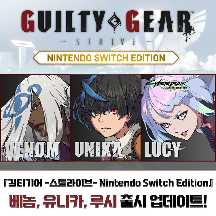 『길티기어 -스트라이브- Nintendo Switch Edition』 DLC 캐릭터 ‘베놈’, ‘유니카’, ‘루시’ 출시 & 대형 업데이트!