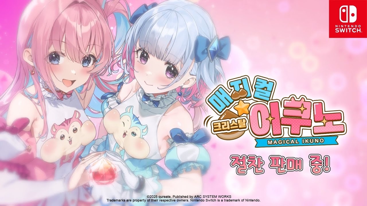 아크시스템웍스아시아 주식회사는 qureate사의 쿠리스탈 수집 액션 게임 『매지컬 크리스탈☆이쿠노』의 한국어판이 오늘 (11일, 목) Nintendo Switch™ 다운로드 전용 소프트로 출시되었다고 발표했다. 또한 출시를 기념하여 SNS 인증 이벤트를 개최한다고 밝혔다.지난 2025년 5월 qureate사에서 출시된 『매지컬 크리스탈☆이쿠노』는 세계의 평화를 관장하는 쿠리스탈의 요정 ‘센’과 ‘리즈’를 만난 여대생 ‘히나타 이쿠노’와 ‘츠키네 아나미’를 주인공으로 하는 쿠리스탈 수집 액션 게임으로, 하메스터의 부하 꽉스터를 피하면서 스테이지에 분포된 쿠리스탈을 모아 공략해 나가야 한다. 체력이 0이 되면 특유의 연출을 감상할 수 있는 등의 요소를 이누이 와온(乾 和音) 씨의 매력적인 일러스트와 CG로 즐길 수 있다.절찬리 판매 중인 qureate사의 미소녀 게임 「폐심: 심야방송」, 「버니 가든」, 「프리즌 프린세스」 등 타이틀에 뒤이어, 아크시스템웍스 아시아에서 정식 한국어화되어 출시되는 『매지컬 크리스탈☆이쿠노』는 Nintendo Switch™ 다운로드 전용 소프트로 오늘 (11일, 목)부터 My Nintendo Store 및 닌텐도 e숍에서 만나볼 수 있다.■ 『매지컬 크리스탈☆이쿠노』 한국어판 출시 기념 이벤트『매지컬 크리스탈☆이쿠노』 한국어판의 출시를 기념하여, 추첨을 통해 『매지컬 크리스탈☆이쿠노 특제 멀티클리너』를 증정하는 SNS 이벤트가 오늘부터 개최된다.● 이벤트 참여 기간: 2025년 12월 11일 (목) ~ 2025년 12월 21일 (일)● 추첨 사은품: 『매지컬 크리스탈☆이쿠노 특제 멀티클리너』 (5명)● 이벤트 참여 방법:1. 아크시스템웍스 아시아의 공식 X(구 트위터) 계정(@ASW_ASIA) 혹은 인스타그램 계정(@arcsystemworks_asia)을 팔로우2. 『매지컬 크리스탈☆이쿠노』 한국어판의 출시 기념 이벤트 게시물을 X에서 ‘재게시(리트윗)’, 혹은 인스타그램에서 이벤트 게시물에 ‘좋아요’를 누르면 이벤트 참여 완료● 아크시스템웍스 공식 X(구 트위터): https://twitter.com/ASW_ASIA● 아크시스템웍스 공식 인스타그램: https://www.instagram.com/arcsystemworks_asia/● 당첨자 발표: 2025년 12월 24일 (수) 아크시스템웍스 아시아 공식 SNS를 통해 발표■『매지컬 크리스탈☆이쿠노』 한국어판 트레일러■ 『매지컬 크리스탈☆이쿠노』 게임 소개● 스토리‘히나타 이쿠노’와 ‘츠키네 아나미’는 무척 평범한 여대생!어느 날, 세계의 평화를 관장하는 쿠리스탈의 요정 ‘센’과 ‘리즈’와 만나게 되고악의 제왕 하메스터로부터 세계를 지켜 달라는 부탁을 받게 된다!그와 동시에, 하메스터가 거리를 습격하기 시작하여 일이 커지게 되는데!소중한 것을 지키기 위해서 싸우기로 마음먹은 순간…이게 무슨, 빛의 전사로 변신해 버렸다!세계를 지키기 위해, 소중한 친구를 지키기 위해, 둘은 일어선다!하지만 하메스터는 쿠리스탈의 힘으로 점점 강해지게 되고…세계의 평화는 어떻게 되는 거야!? 힘내라 이쿠노, 아나미!● 캐릭터 소개1) 히나타 이쿠노(CV. AKIHO SUZUMOTO)지극히 평범한 여대생으로서 대학에 다니고 있었으나, 쿠리스탈의 요정 ‘센’을 만나 세계를 구하기 위한 싸움에 몸을 던지게 된다.시원시원한 성격으로, 누구에게나 편견 없이 대한다.어릴 적부터 보고 있는 여아용 애니메이션을 지금도 매주 빠짐없이 시청하고 있다.또한, 어릴 때부터 춤을 배워 왔기 때문에 기본적인 신체 능력이 뛰어나다.2) 츠키네 아나미(CV. SAHO SHIRASU)이쿠노와는 어릴 때부터 친하게 지낸 친구로예의 바르며 청순하지만, 가끔 깜짝 놀랄 만한 엉뚱한 모습을 보이기도.쿠리스탈의 요정 ‘리즈’를 만난 것을 계기로 이쿠노 일행과 행동을 함께하게 된다.학력이 높고 공부를 전반적으로 잘한다. 머리 회전도 빠르지만, 느긋느긋한 성격 때문에 그것이 잘 드러나지 않는다.3) 센(CV. SAIMA NAKANO)쿠리스탈의 요정. 넘어진 이쿠노에게 깔리면서 티셔츠에 달라붙게 되고, 일심동체가 된다.자신감이 넘치고 칭찬받는 것을 매우 좋아하는 데다, 무엇보다 자기 자신을 가장 좋아하는 성격. 하지만 덤벙대고 멍청한 부분도 많아 트러블 메이커이기도 하다.4) 리즈(CV. SACHIE HIRAI)또 다른 쿠리스탈의 요정. 아나미에게 깔려서 일심동체가 된다.꼼꼼한 성격으로, 규칙이나 정해진 것을 지키지 않으면 직성이 풀리지 않는다.때문에 다소 융통성이 없는 면도 있지만, 털털한 성격의 센과 말다툼을 하면서도 양호한 관계를 유지하고 있다.● 게임 시스템- 쿠리스탈을 회수하라!하메스터 부하인 꽉스터를 피하면서, MAP에 흩어져 있는 쿠리스탈을 모두 회수하면 클리어할 수 있다.MAP에는 체력을 회복하는 ‘쿠림소다’, 무적이 되어 꽉스터를 짓밟을 수 있는 ‘쳇바퀴’ 등 다양한 아이템이 떨어져 있다.이것들을 활용하여 스테이지를 공략해 나가야 한다.단, 속도 저하나 일정 시간 행동 불능이 되는 함정도 도사리고 있어 주의해야 한다.체력이 0이 되면, 보기 민망한 모습이 되어버릴지도...!?세계의 평화와 소녀의 성역을 지키기 위해, 적과 부딪히지 않도록 피하면서 쿠리스탈을 모아라!- 쿠리스탈을 볼주머니에 가득 채워 볼륨 UP!쿠리스탈을 모으면, 가슴에 달라붙은 쿠리스탈의 요정 ‘센