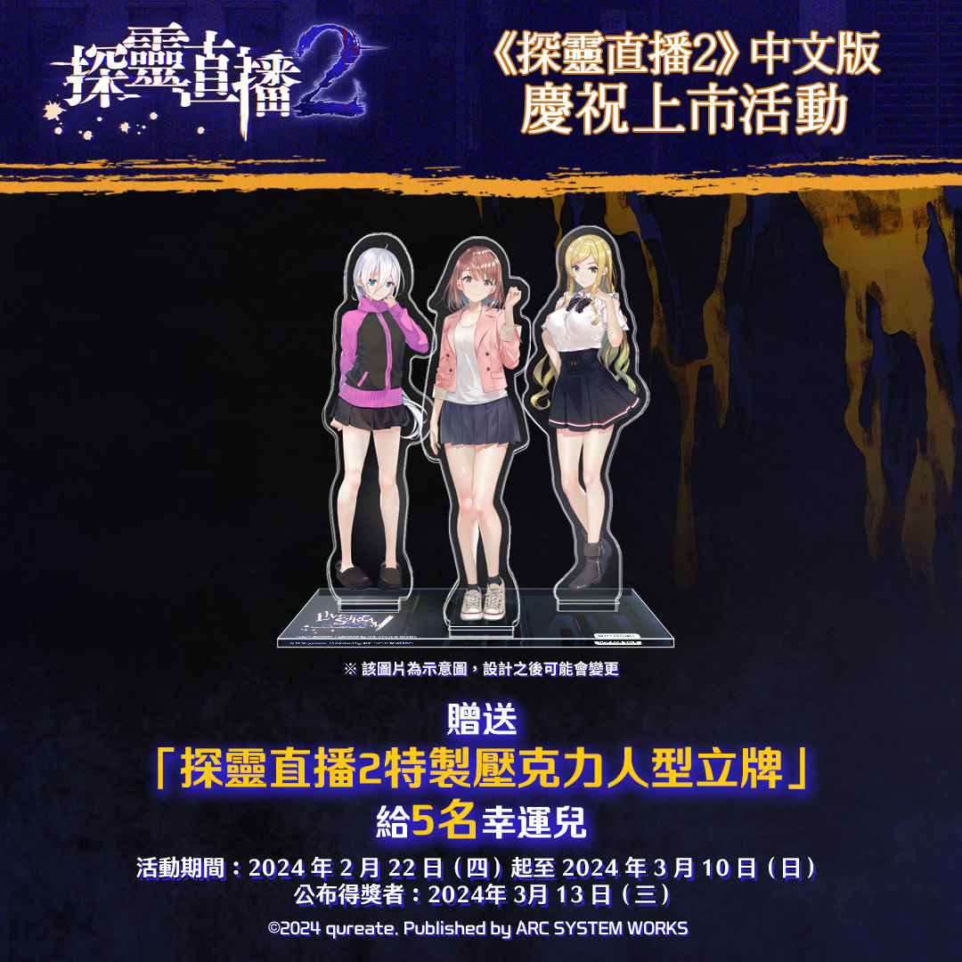 ● 活動獎品:探靈直播2特製壓克力人型立牌(預計將抽出5名)