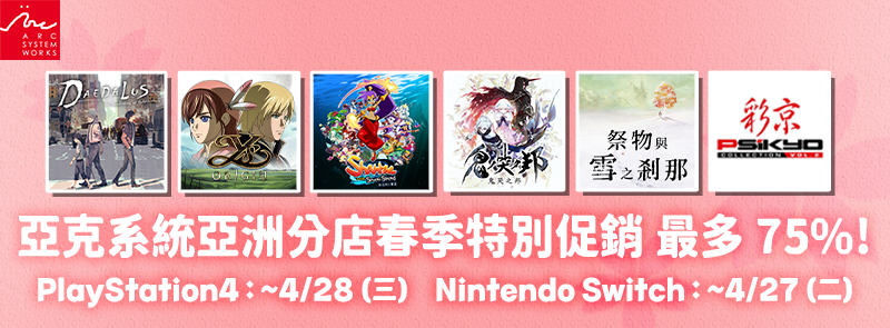 亞克系統亞洲分店的遊戲目前起到2021年4月28日為止,進行春季特別促銷!