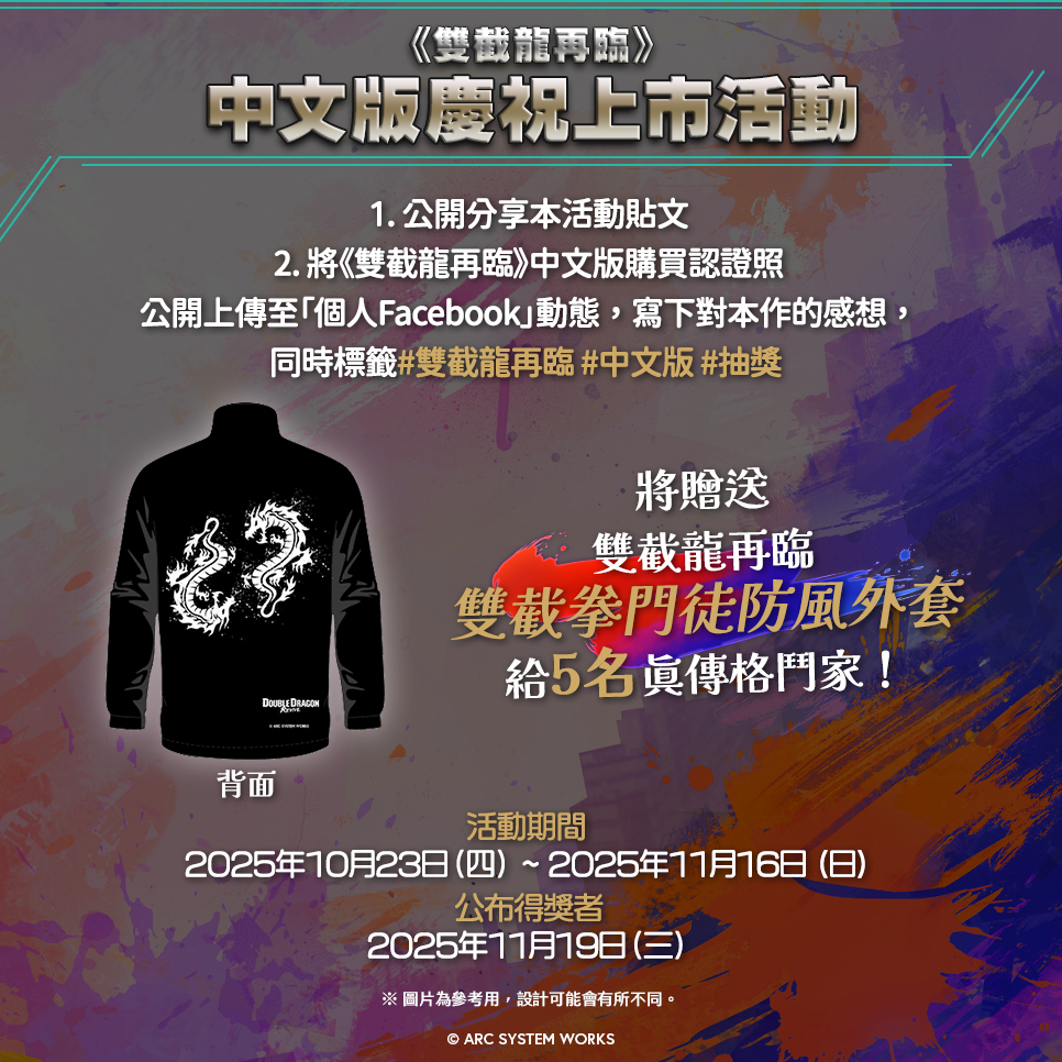 亞克系統亞洲(ARC SYSTEM WORKS ASIA) 宣布,Nintendo Switch™、PlayStation®5、PlayStation®4及Steam®平臺的Roguelite清版動作新作《絕對魔權》中文實體盒裝版(Nintendo Switch™、PlayStation®5)於今日上市,並舉辦慶祝上市活動。由熱銷作品《怒之鐵拳4》的開發團隊所推出,融合奇幻與動作的新類型「Roguelite清版動作」遊戲《絕對魔權》中,玩家可以不斷挑戰Roguelike 要素、充滿節奏感的戰鬥,以及以超過10萬字篇幅描繪而成的龐大而深刻的故事。透過知名創作者打造的音樂與壓倒性的動畫影像,玩家能夠沉浸在《絕對魔權》所展開的奇幻世界之中。■ 《絕對魔權》中文實體盒裝版慶祝上市活動開始!為慶祝《絕對魔權》中文實體盒裝版上市,從今天起舉辦抽獎活動。公開上傳中文實體盒裝版購買認證照或是遊玩遊戲的畫面並留下關於本作的感想,就有機會得到「絕對魔權特製徽章」。抽獎活動詳情如下。● 活動時間:2025 年 11月 6 日(四)起至 2025 年 11 月 23 日(日)● 活動獎品: 絕對魔權特製徽章(預計抽5名)● 活動參與辦法:1. 點擊 亞克系統亞洲 粉絲專頁讚。2. 公開分享該活動貼文。3. 將《絕對魔權》中文實體盒裝版購買認證照公開上傳至自己的「個人Facebook」動態,寫下對本作的感想,同時標籤 #絕對魔權 #中文版 #抽獎※參加活動前請詳閱活動辦法。※購買認證照可上傳購買之遊戲軟體照、能夠證明購買的照片等,請勿使用非本人的圖片參與活動,經主辦單位發現或經第三人檢舉,則主辦單位有權取消使用者之參與、得獎資格,主辦單位不另行通知。※購買認證照請公開上傳到「自己的Facebook上」,若未上傳到自己的Facebook視同未參加活動。※請勿以人頭帳號、分身假帳號重複留言,若使用者以人頭等假帳號或電腦駭客程式等不正當之手段參與活動,經主辦單位發現或經第三人檢舉,則主辦單位有權取消使用者之參與、得獎資格,主辦單位不另行通知。● 官方Facebook粉絲專頁貼文:● 公布得獎者:2025 年 11月 26 日(三)於亞克系統亞洲官方社群媒體公布。■ 《絕對魔權》中文數位下載版現正販售中!《絕對魔權》中文數位下載版已在 Nintendo Switch™、PlayStation®5、PlayStation®4、Steam®平臺推出,目前可至各大平臺購買並下載遊玩。■ 《絕對魔權》PlayStation®5 / PlayStation®4商品頁面台灣https://store.playstation.com/zh-hant-tw/concept/10014070/香港https://store.playstation.com/zh-hant-hk/concept/10014070/■ 《絕對魔權》Steam®商品頁面https://store.steampowered.com/app/1904480/Absolum/■ 《絕對魔權》香港Nintendo Switch™商品頁面https://ec.nintendo.com/HK/zh/titles/70010000101923※台灣eShop可透過Nintendo Switch主機連線使用線上商店進行購買。■ 《絕對魔權》中文實體盒裝版限定內容《絕對魔權》中文實體盒裝版內隨附「數位原聲帶」及「數位美術畫冊」的下載序號。「數位原聲帶」內包含由Gareth Coker(《Ori and the Blind Forest》、《Halo Infinite》、《Prince of Persia: The Lost Crown》)、北村友香(《DARK SOULS》系列、《ELDEN RING》)及Mick Gordon(《Doom Eternal》、《Atomic Heart》)豪華作曲家陣容創作的樂曲!「數位美術畫冊」也可欣賞各具魅力的角色們。※ 數位美術畫冊及數位原聲帶以序號形式隨附於中文實體盒裝版內。※ 圖片為參考用,設計可能會有所不同。■ 新型「Roguelite清版動作」誕生!融合了「清版動作」與「Roguelite」的「Roguelite清版動作」在此誕生!本作除了需要敏捷反射神經與連鎖技操作的快節奏動作技巧之外,每次進入遊玩時還能與新敵人展開新的戰鬥。■ 深邃的劇情與壓倒性的世界觀「從毀滅中崛起的新英雄!」大災厄使「塔拉姆」陷入瀕臨崩壞的境地。在太陽王阿茲拉的暴政與混亂之中,反叛軍的巫師「烏查維」結成了抵抗軍。究竟抵抗軍能否利用禁忌的魔法之力打破太陽王的絕對魔權,並阻止他的野心呢?■ 支援線上多人遊玩不僅支援本地多人遊玩,還支援線上連線模式,能與好友一同合作挑戰。運用屬性搭配與連鎖計攻擊,擊潰強敵吧!■ 擁有不同戰鬥風格的英雄們!可遊玩角色各自具備獨特的戰鬥風格,玩家能依照自己的喜好與遊玩方式選擇角色。-「加蘭德拉」善於使用巨劍與死靈術,展開強力的近身戰鬥。-「卡爾」揮舞矮人火銃與雙拳作戰的爆破近戰型角色。-「布羅姆」為了守護子民而踏上冒險的天才魔法師。-「西德」謎樣的戰士,追隨著靈魂的碎片。■ 性格鮮明的角色-「莫塔·米瑪」-「雷肯」-「維卡娜」-「札法里」■ 《絕對魔權》上市前導影片https://youtu.be/Z4Xk_Mo1eLE■ 《絕對魔權》實機遊玩影片https://youtu.be/gHu5-0i57Co■ 《絕對魔權》官方網站繁體中文https://www.arcsystemworks.jp/absolum/zh-hant/簡體中文https://www.arcsystemworks.jp/absolum/zh-hans/■ 《絕對魔權》前導預告片https://youtu.be/pEFgRwzUmVU 遊戲名稱 絕對魔權 平臺 Nintendo Switch™、PlayStation®5、PlayStation®4、Steam®數位下載版Nintendo Switch™、PlayStation®5實體盒裝版 上市日 現正販售中 遊戲類型 Roguelite清版動作遊戲 遊戲人數 1~2人 語言 語音:英語字幕:繁體中文、簡體中文、日文、英文、韓文、法文、義大利文、德文、西班牙文、葡萄牙文、俄文、烏克蘭文 版權標誌 © 2025 Absolum, a game developed by Supamonks, Guard Crush and Dotemu, and published by Arc System Works.